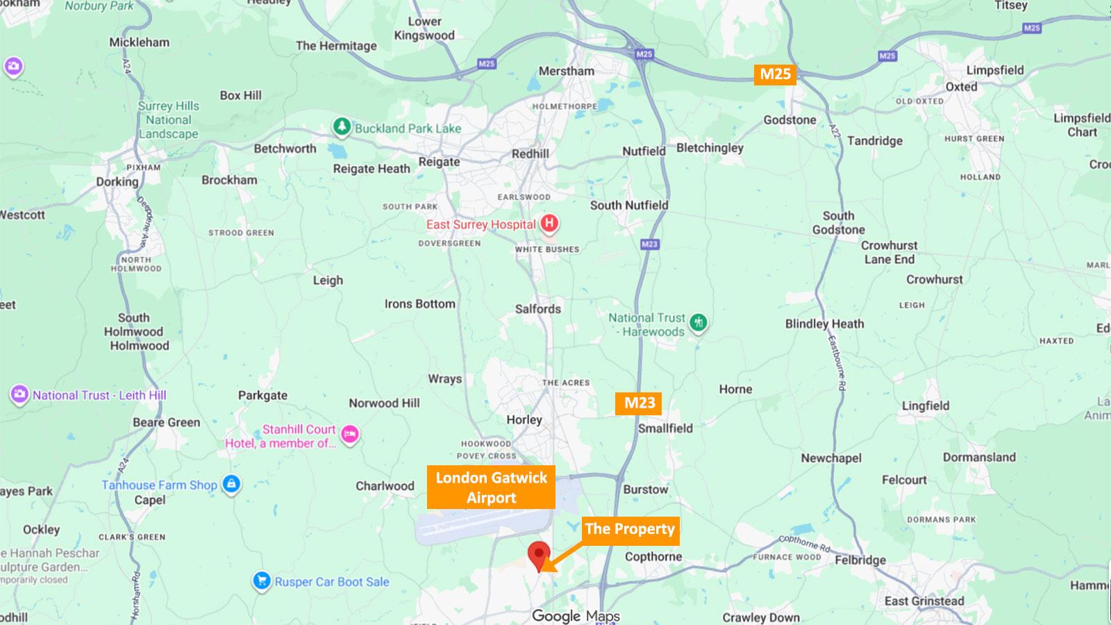 Approximately 1.5 miles south of Crawley town centre, 9 miles south of Horley and 28 miles south of Central London