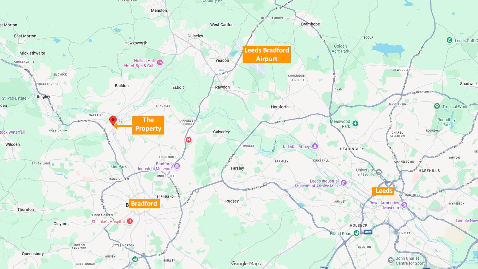 Shipley Railway Station is close by and provides regular services to Leeds and Bradford. Leeds Bradford Airport is also within a short drive.