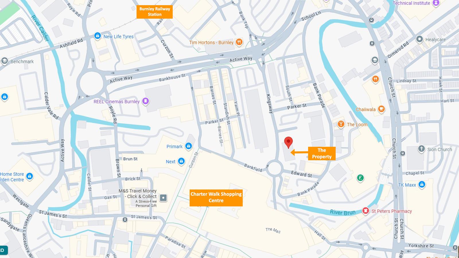 The property is prominently situated in the heart of Burnley Town Centre on the east side of Kingsway and immediately north of High Street and Charter Walk Shopping Centre. Nearby occupiers include Royal Mail, Primark, Poundland, River Island and New Look.