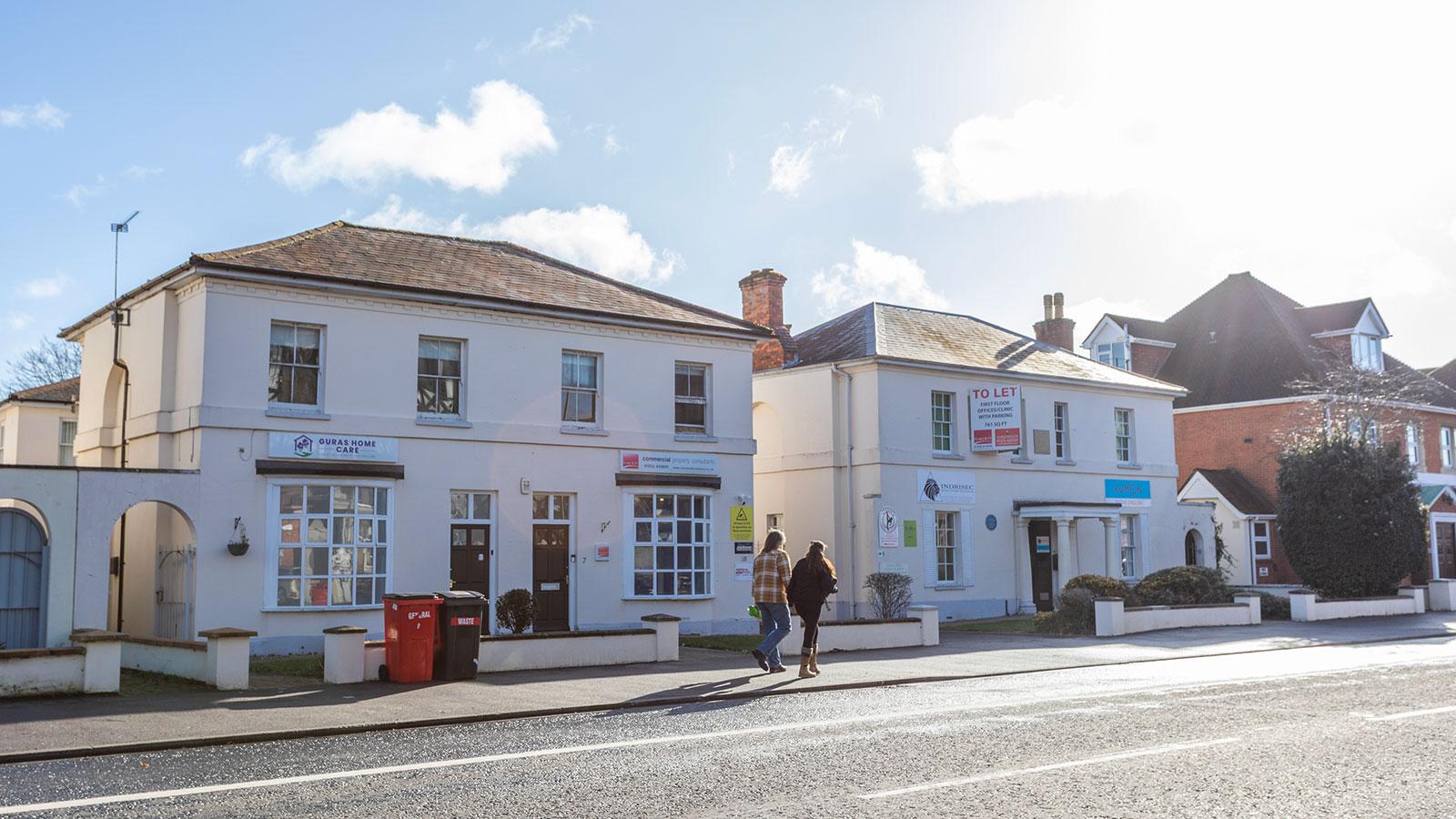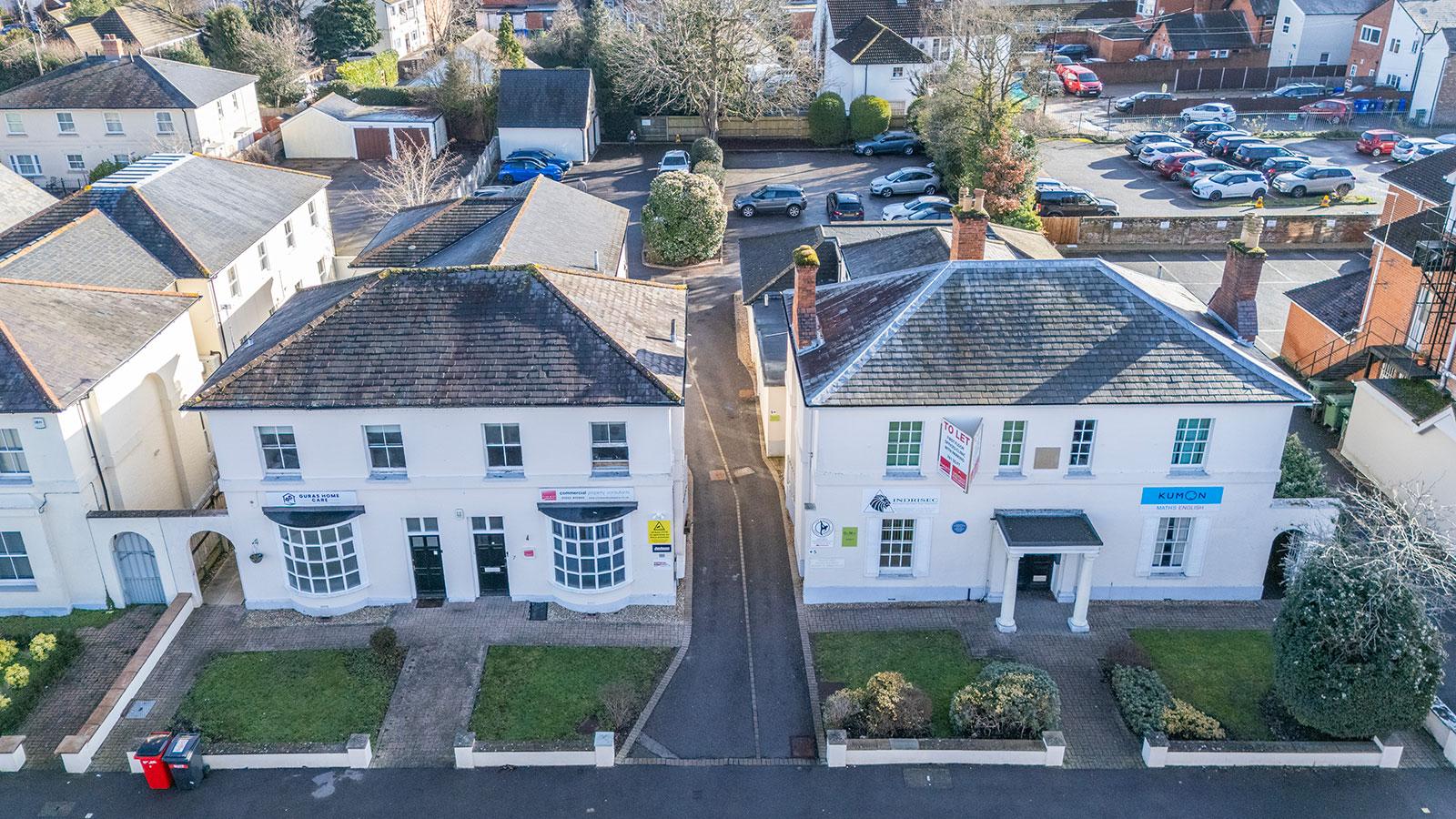 The property comprises a substantial two storey office building with a shared driveway to the side of the property leading to a large car park at the rear with approximately 12 spaces including a large pitched roof double garage. The property provides a total area of 2,679 sq ft and contains five office suites and an apartment. There are three office suites on the ground floor, all with separate front doors. The first floor contains a two-bedroom apartment and an office suite, both accessed via their own separate entrances, one on each side of the building. The total site area extends to some 0.09 Ha (0.23 acres) offering potential for future redevelopment subject to consents.