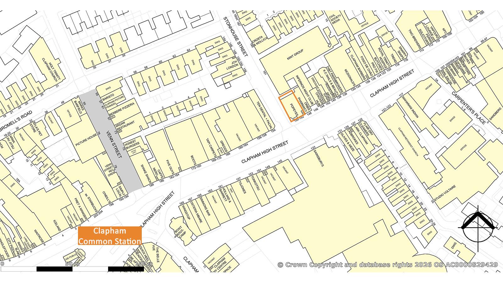 Clapham is a fashionable and affluent South London suburb. The property occupies a prominent corner position, at the junction of Clapham High Street and Stonhouse Street. The property benefits from excellent transports links, with Clapham Common Station some 400 yards and Clapham North Station approximately 600 yards. Nearby occupiers include Sainsbury's (opposite), McDonald's, Shake Shack, Honest Burgers, Greggs, Marks & Spencer's and Inferno's Night Club.